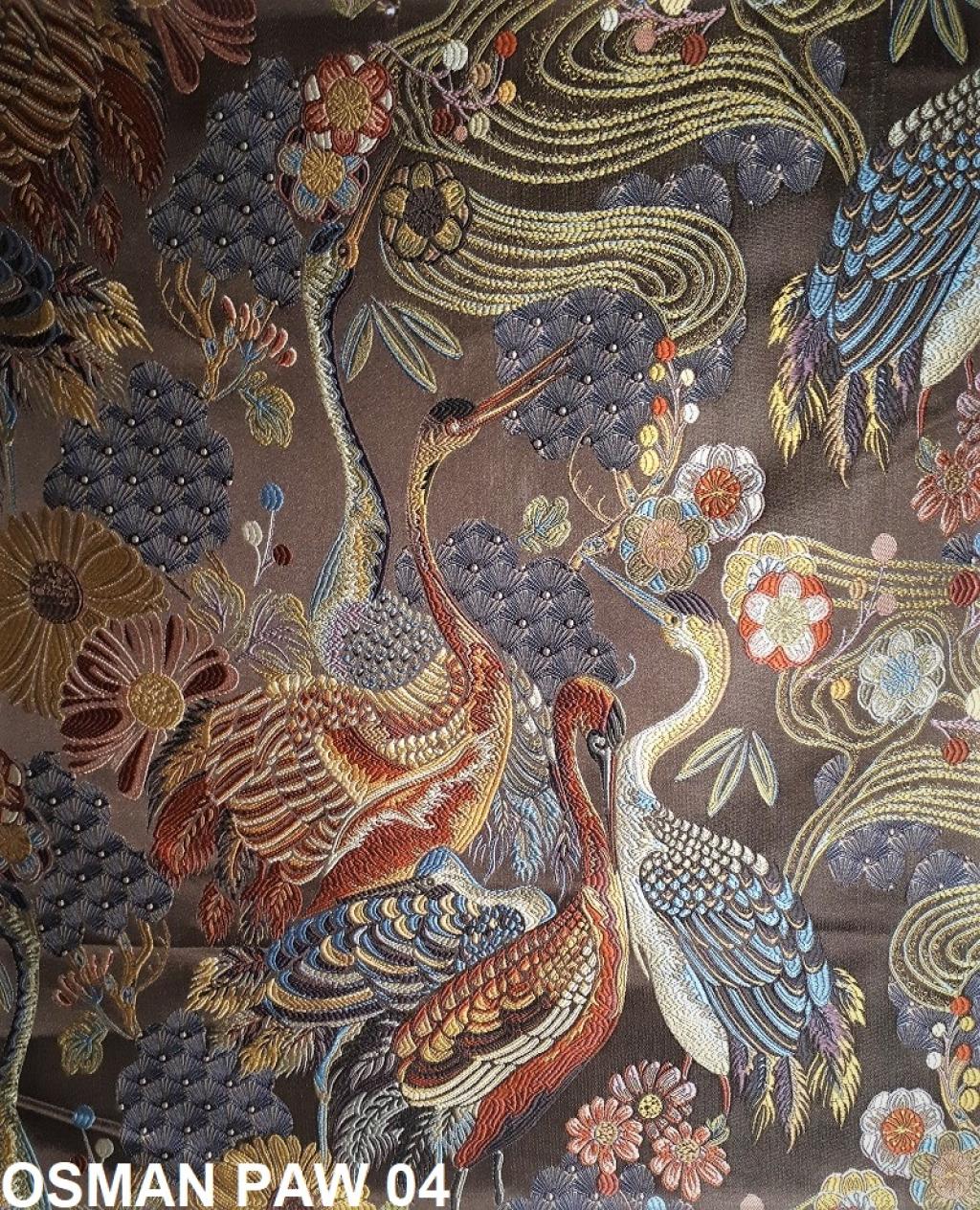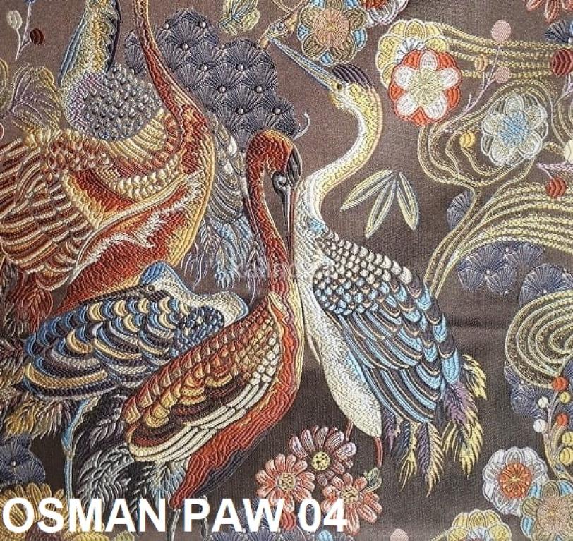 OSMAN Paw - miękka, żakardowa tkanina obiciowa z orientalnym wzorem wyszytych ptaków. Tkanina tapicerska pięknie prezentuje się na meblach stylowych jak i nowoczesnych, sofach, szezlongach, kanapach, fotelach, poduszkach itp. Może być również wykorzystana jako tkanina dekoracyjna.