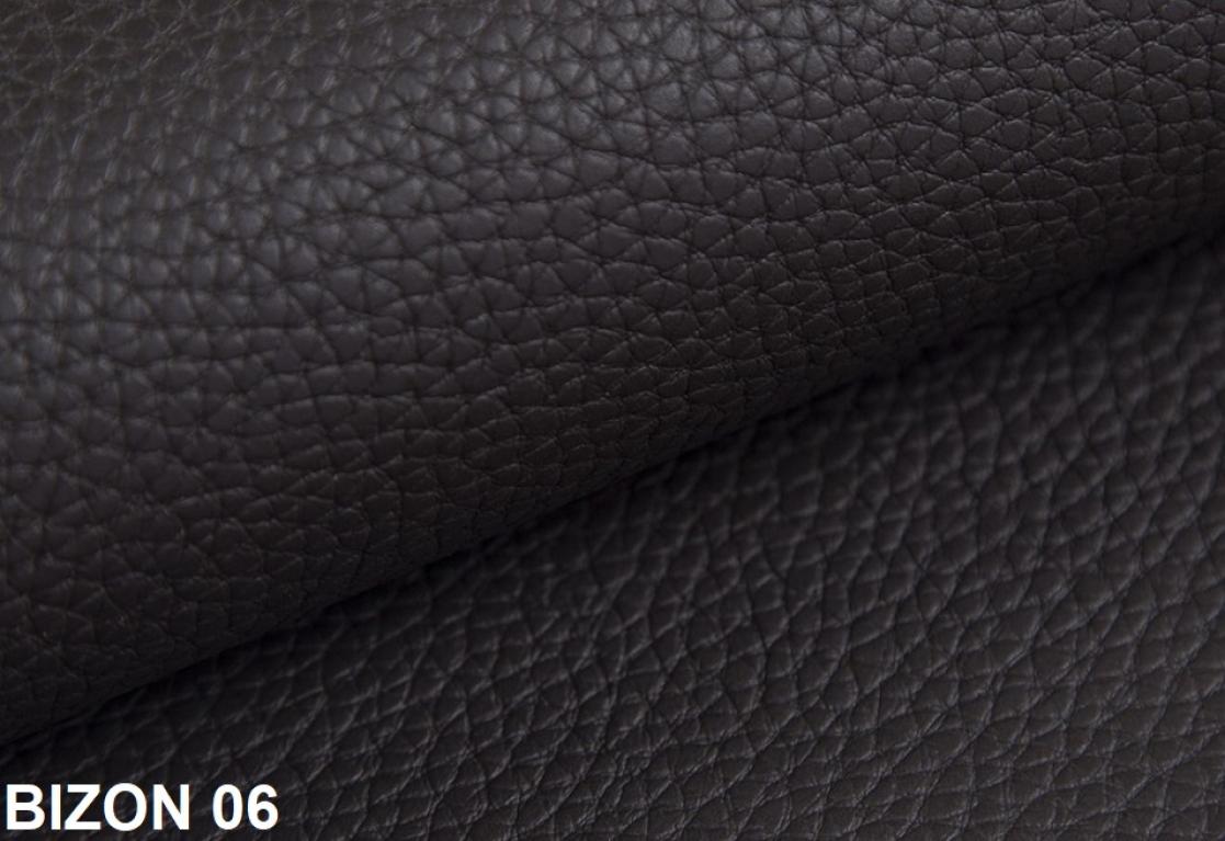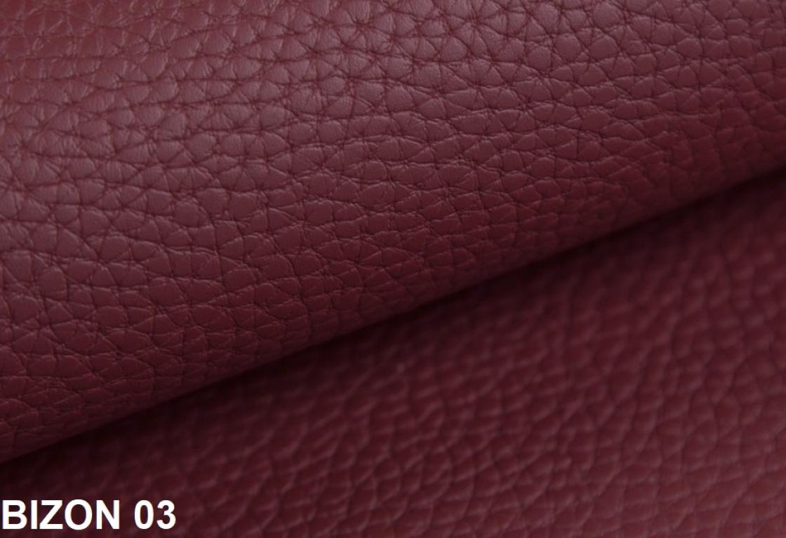 BIZON - poliuretanowa tkanina tapicerska z wyściółką z prawdziwej skóry. Idealnie zastępuję prawdziwą skórzaną tapicerkę. Idealne połączenie zalety skór naturalnych takich jak trwałość i atrakcyjny wygląd, a pozbawiony jest ich wad jak np. konieczność regularnego czyszczenia i konserwację. Odporna jest na ścieranie, zginanie, rozrywanie. Idealna na cały mebel lub jego część. Wykorzystywana również do produkcji galanterii: portfeli, torebek. Tkanina posiada bardzo dużą odporność na przetarcia.