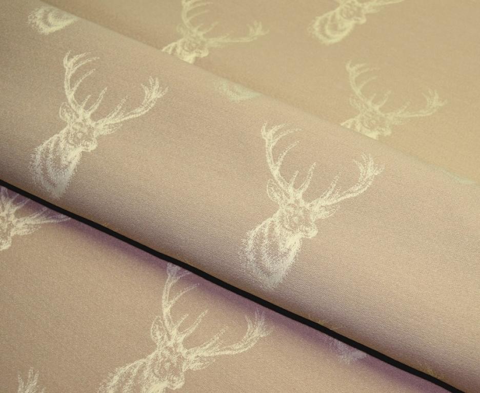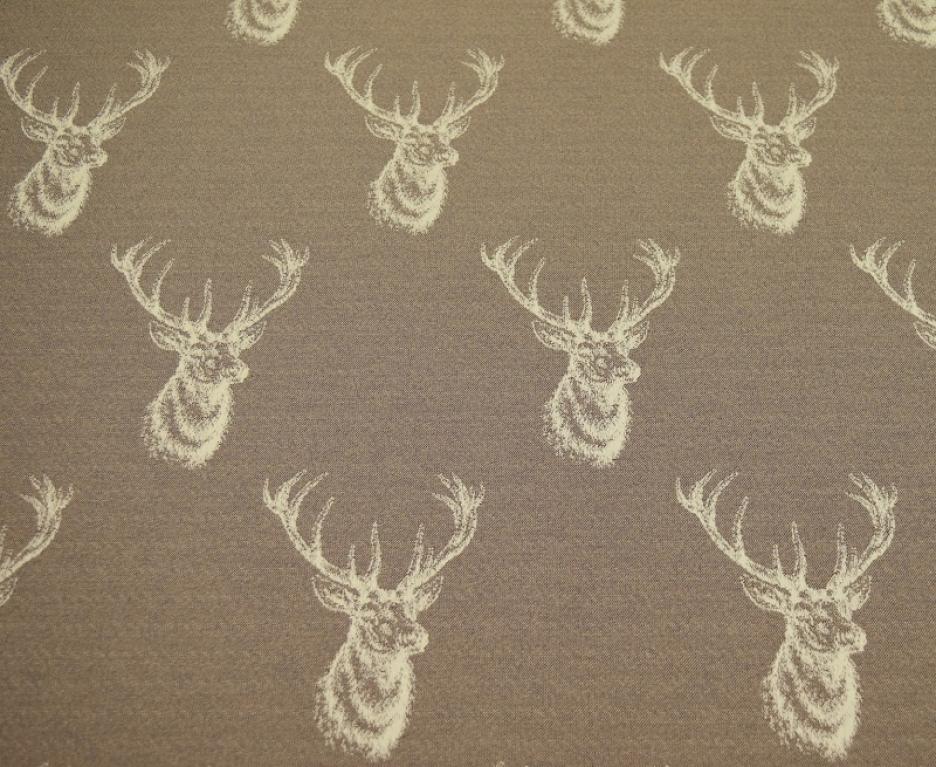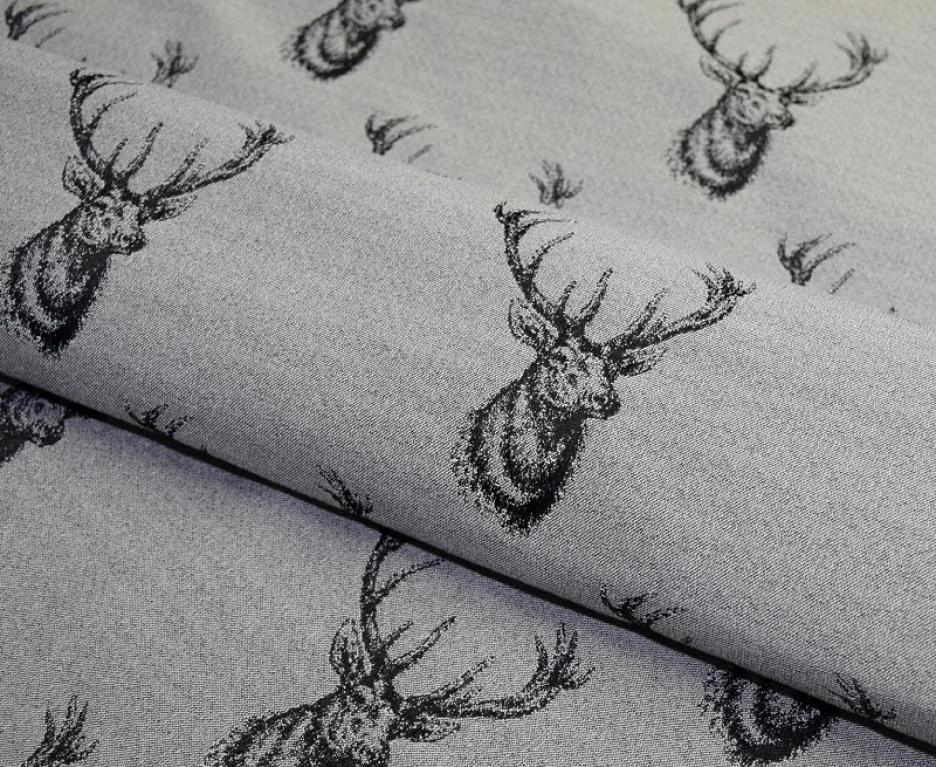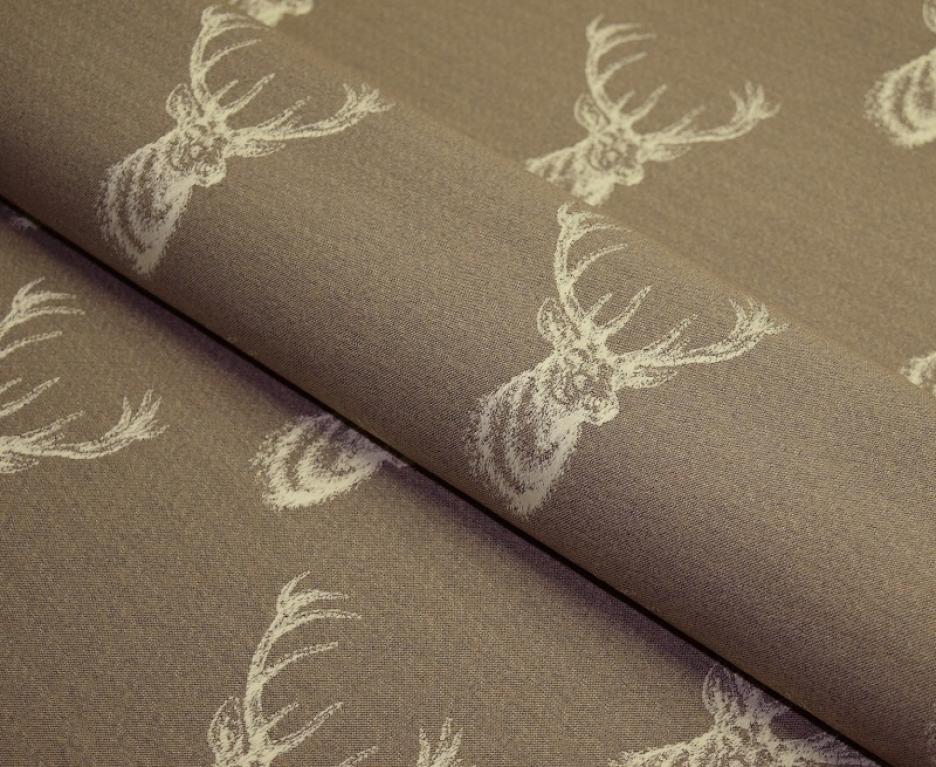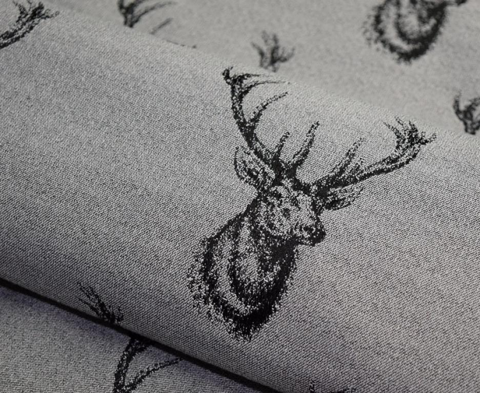 HUBERT, tkanina tapicerska, meblowa z motywem zwierzęcym popiersia jelenia z rozrośniętym porożem, materiał tkany(nie drukowany). Materiał tapicerski posiada drobną strukturę plecionki z niepowtarzalnym wzorem sprawi że każde pomieszczenie z jego wykorzystaniem będzie wyjątkowe i działające na wyobraźnie. Tkanina przeznaczona jest na wszelkie meble tapicerowane typu sofy, kanapy, fotele, wersalki, tapczany, narożniki. Można z niej również uszyć pokrowce na poduszki, doskonale prezentuje się np., w domkach myśliwskich.