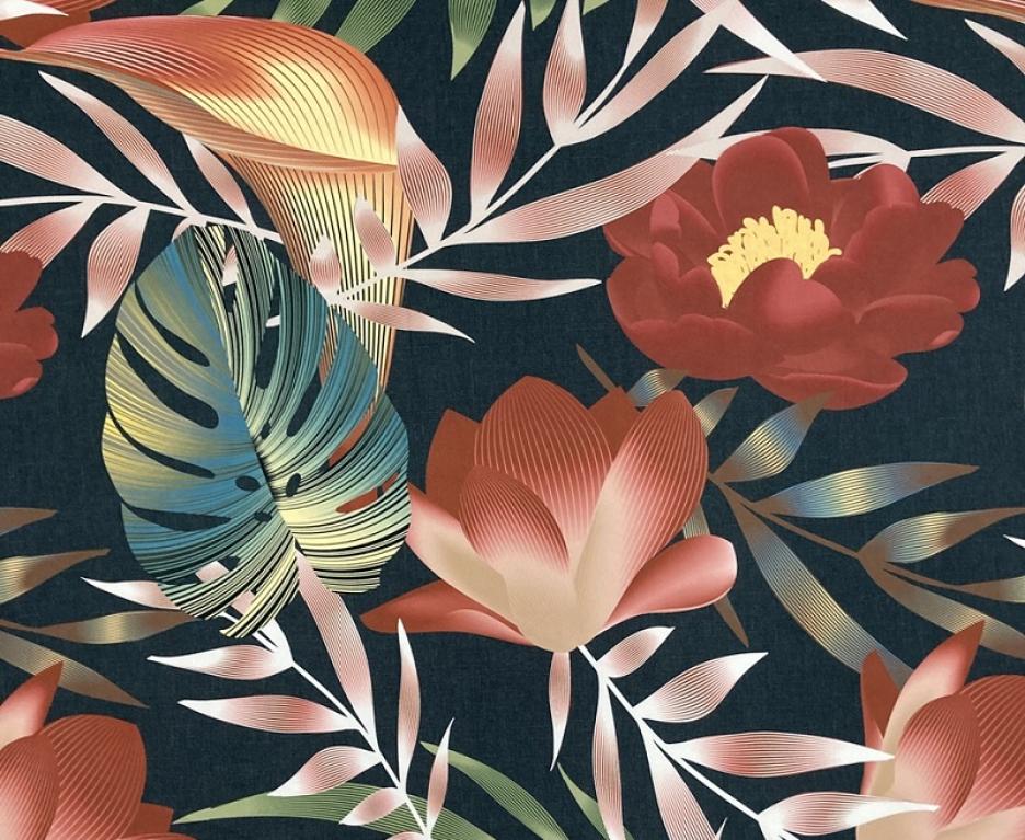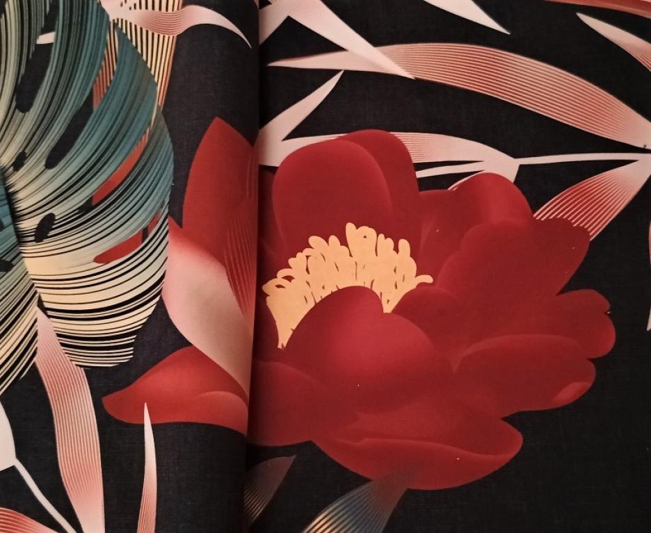 KWIATY D-143 czarny, zielony, pomarańcz, bordo