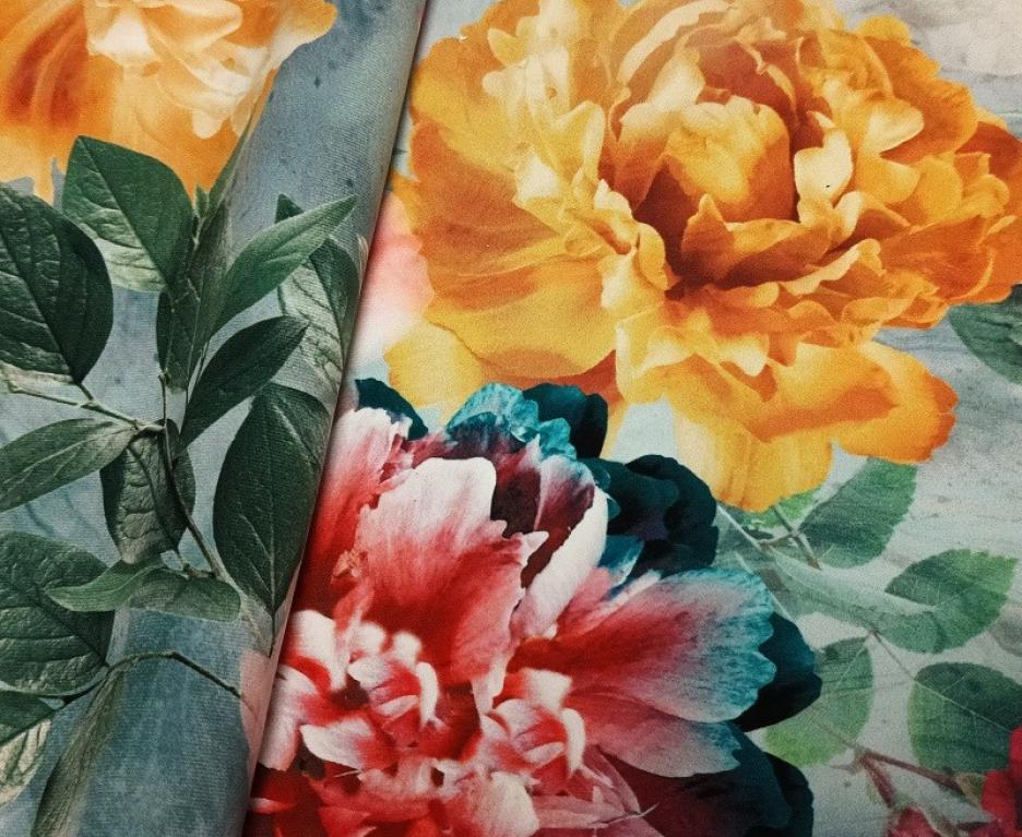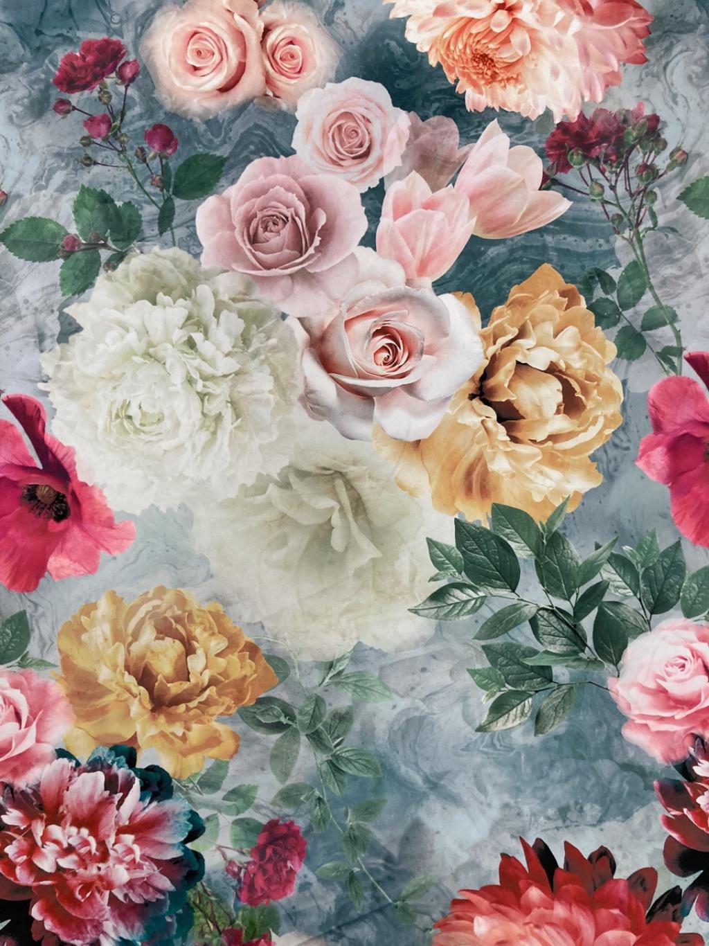 RÓŻE D-141, tkanina tapicerska miękka i miła w dotyku, powierzchnia materiału posiada delikatny meszek jest trwała i łatwa w utrzymaniu i pielęgnacji. Tkanina z nadrukowanymi różami na błękitnym tle emanuje elegancją i naturalnym pięknem. Kolorystyka jest dopracowana w najdrobniejszym detalu, od delikatnych odcieni róż, po soczyste zielone liście. Każdy wzór jest starannie zaprojektowany, przeciągając wzrok i dodając klasy każdemu elementowi, na którym się znajduje. Nadruki róż doskonale sprawdzą się jako elementy dekoracyjne w różnych kontekstach. Możesz je wykorzystać jako ozdobne poduszki, zasłony, obrusy czy elementy obiciowe mebli. Tkanina doskonale sprawdza na meblach tapicerowanych, sofach, fotelach, tapczanach, pufach, wezgłowiach jak i na poduszkach i zasłonach, obrusach.