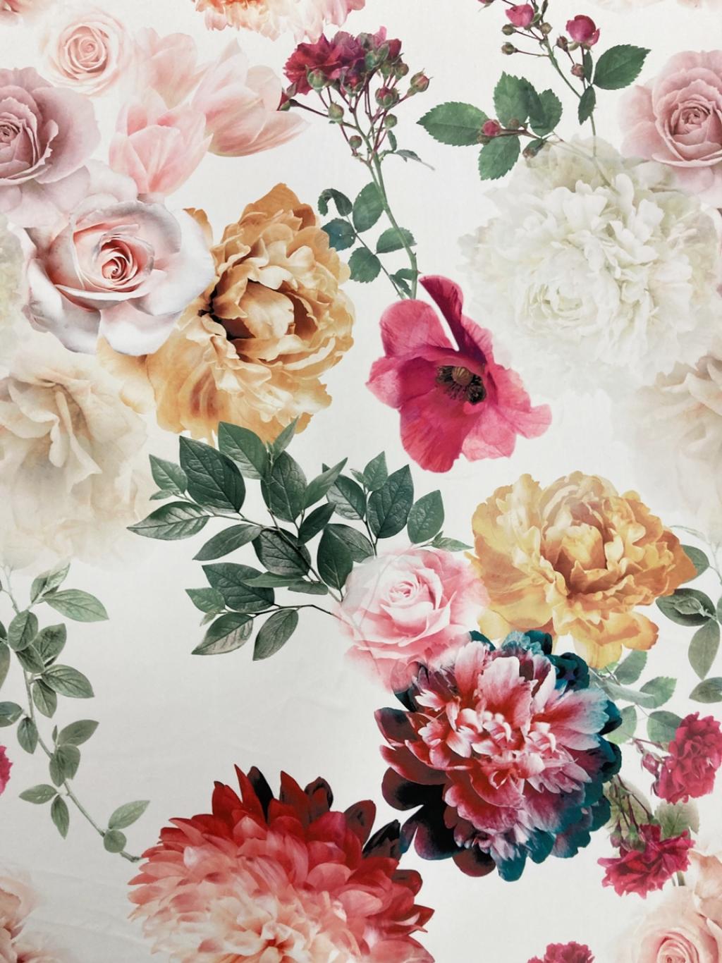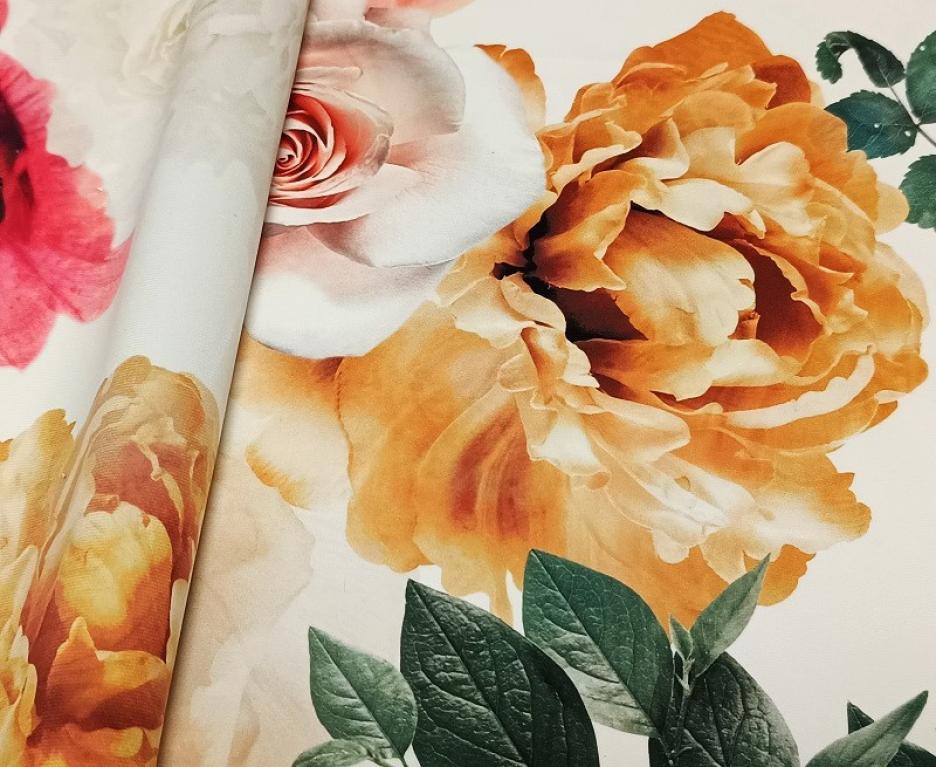 RÓŻE D-140, tkanina tapicerska miękka i miła w dotyku, powierzchnia materiału posiada delikatny meszek jest trwała i łatwa w utrzymaniu i pielęgnacji. Tkanina z nadrukowanymi różami na białym tle emanuje elegancją i naturalnym pięknem. Kolorystyka jest dopracowana w najdrobniejszym detalu, od delikatnych odcieni róż, po soczyste zielone liście. Każdy wzór jest starannie zaprojektowany, przeciągając wzrok i dodając klasy każdemu elementowi, na którym się znajduje. Nadruki róż na tkaninie to nie tylko estetyczne dodatki, ale także trafiona opcja dla osób, które są podkreślić swoje wnętrza czy garderobę eleganckim akcentem. Tkanina doskonale sprawdza na meblach tapicerowanych, sofach, fotelach, tapczanach, pufach, wezgłowiach jak i na poduszkach i zasłonach, obrusach.