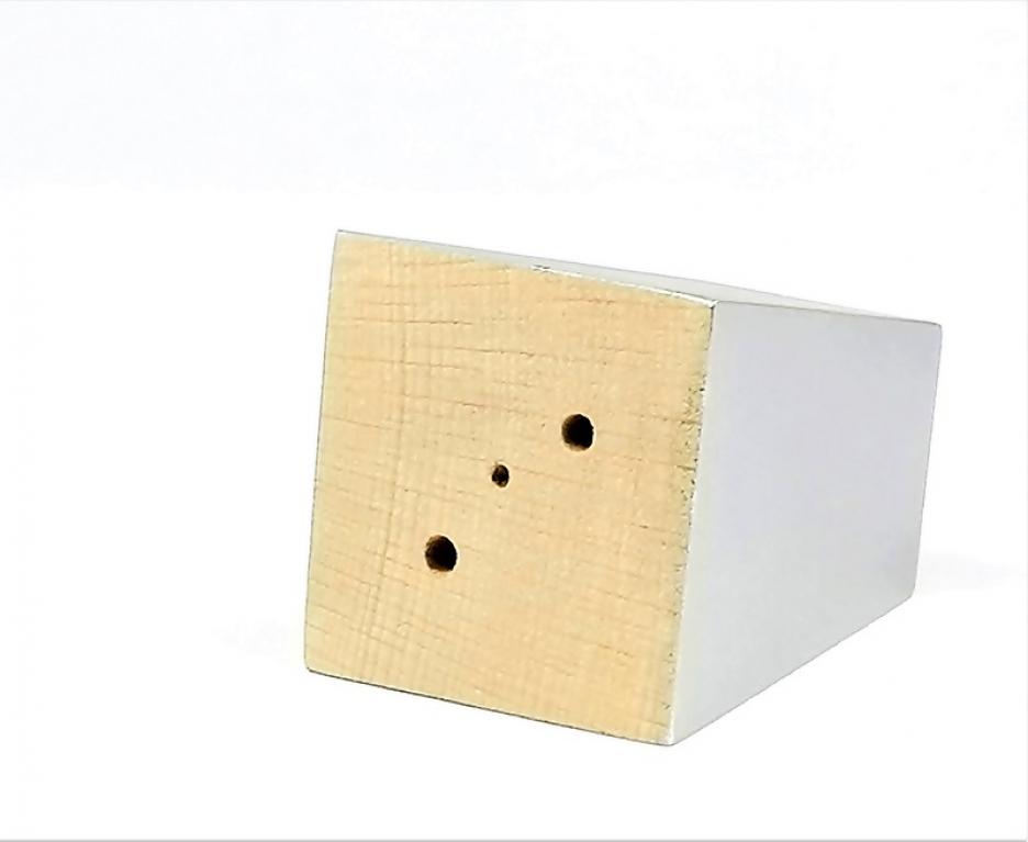 NÓŻKA DREWNIANA TRAPEZ A09 H-9 - wykonana z drewna bukowego pomalowana lakierem w kolorze srebrnym, posiada dwa otwory na śruby mocujące. Noga przeznaczona do montowania we wszelkiego typu meblach: szaf, komód, puf, szafek, sof, foteli itp.