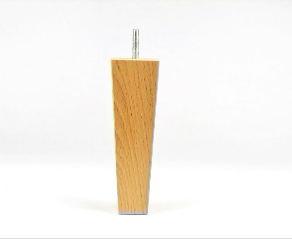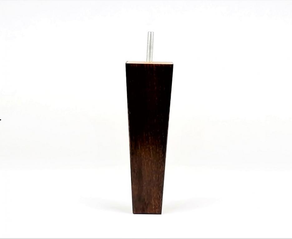 NÓŻKA DREWNIANA TRAPEZ L18 H-18 - wykonana z drewna bukowego pomalowana lakierem w kolorze orzechu i buku, posiada śrubę mocującą. Noga przeznaczona do montowania we wszelkiego typu meblach: szaf, komód, puf, szafek, sof, foteli itp.