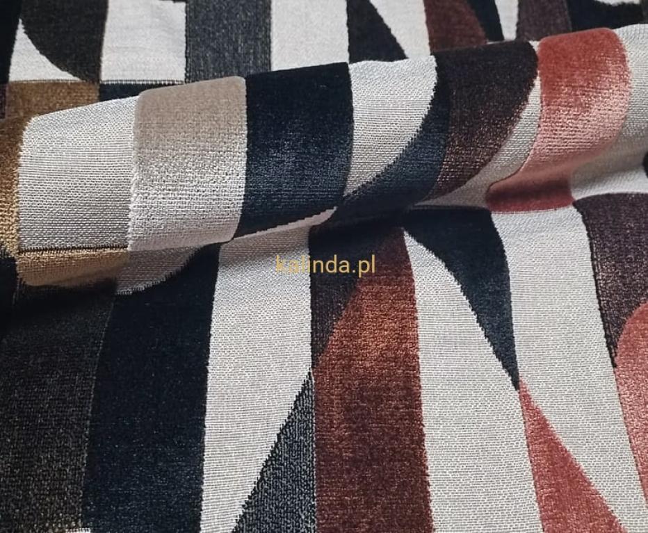 Odkryj wyjątkowy charakter tkaniny EMPIRE, która jest apogeum elegancji i nowoczesnego designu w tapicerstwie i dekoracji wnętrz. Tkanina o składzie 78% wiskozy i 22% poliestru zachwyca wytrzymałością i łatwością w utrzymaniu, co sprawia, że jest doskonałym wyborem na sofy, fotele oraz inne elementy tapicerowane. Pluszowy wzór 3D materiału tworzy unikatową grę kolorów i kształtów, gdzie beże, brązy, biel i czerń łączą się w geometryczną kompozycję, na tle plecionki imitującej naturalny len. Nie tylko estetyka, ale i ekologia idą w parze – tkanina EMPIRE nie zawiera szkodliwych barwników, co jest gwarancją bezpieczeństwa dla użytkowników i środowiska.